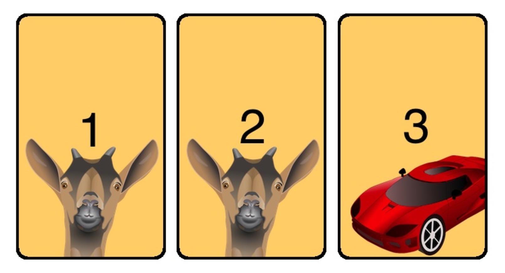 Welcome to the Monty Hall Game Show! Up for grabs, is a fancy new car that could be all yours. We have below, 3 doors. Behind one of these doors, is the car. And behind the other 2 doors, is a goat. If you guess right, the car is all yours. What’s your guess going to be?