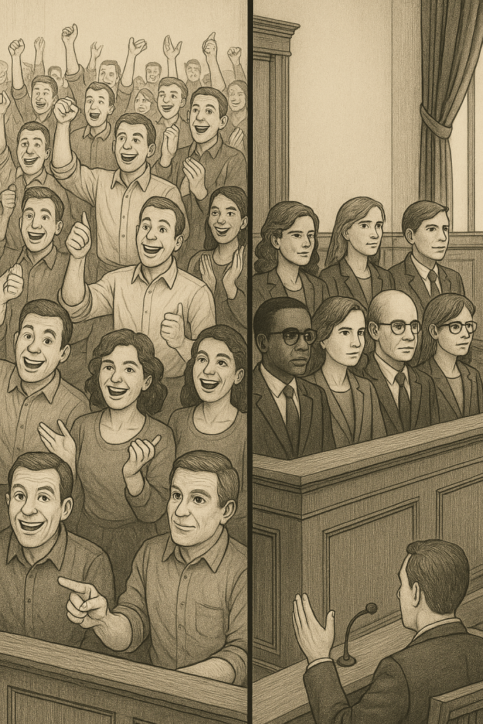 Let’s start off with the foremost philosophical difference between them. EBJ advocates for legislative bodies being filled by jury-elections. Ie, using a jury to elect your representatives in Congress or Parliament, in addition to other elected positions like Mayors, Governors etc.